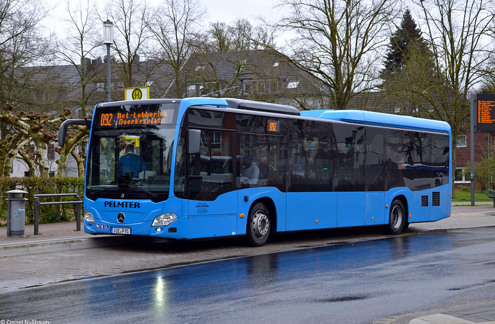 (n.de) Die Busreisen Pelmter GmbH aus Nettetal hat einen Mercedes-Benz O 530 LE C2 (Citaro) in Dienst gestellt und auf das Kennzeichen VIE-P 91 zugelassen. Das Fahrzeug kommt im Auftragsverkehr für die BVR Busverkehr Rheinland GmbH zum Einsatz. Die Aufnahme von Cornel Nußbaum zeigt den Neuzugang am 25.03.2026 am Viersener Busbahnhof.