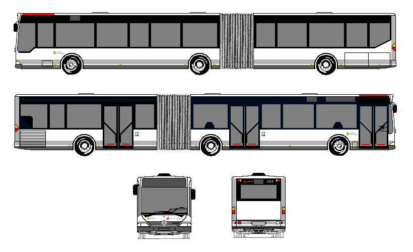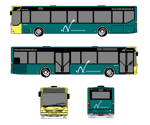 Farbgebung und BeschriftungErstmals stellen die städtischen Verkehrsunternehmen in Viersen und Mönchengladbach in diesem Jahr Omnibusse der Bauart Citaro von EvoBus Mercedes-Benz in Dienst. Es ist anzunehmen, dass Farbgebung und Beschriftung der neuen Fahrzeuge entsprechend der letzten Beschaffungsserien ausgeführt werden - allerdings muss das Design auf die neue Bauart übertragen werden. Aus diesem Grunde präsentiert niederrheinbus.de vorab Entwürfe des Citaro in den jeweiligen Lackierungsvarianten. Dabei handelt es sich um freie Vorschläge und nicht um die offiziellen Musterzeichnungen, so dass Detailänderungen und Abweichungen in der Ausführung zu erwarten sind. Einige der Basisgrafiken wurden freundlicherweise von Claus-Georg Schäfer zur Verfügung gestellt.