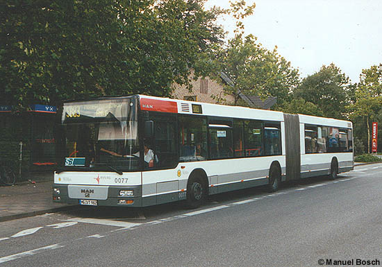 Aufnahme: Einer der beiden für die Linie SB83 beschafften MAN A23 (NG 263), der Wagen 0077, konnte am 11.07.2002 an der Haltestelle Waldniel Kirche aufgenommen werden; beachtenswert die "SB"-Tafel in der Frontscheibe.