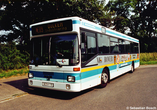 Der zweite der beiden 1992 von der VVG beschafften MAN SL 202 wurde in Überlandausführung und entsprechender Lackierung für den Schnellbusdienst beschafft. Wenige Monate vor der Ausmusterung konnte der Wagen 17 am 28.06.2006 bei einem der zuletzt seltenen Linieneinsätze an der Haltestelle Helenabrunn Wegweiser abgelichtet werden.