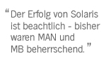 Dass der Urbino nun einen nennenswerten Anteil an den hiesigen kommunalen Fuhrparks einnehmen kann, ist gewiss auch ein Erfolg der Vertriebsverantwortlichen von Solaris. Eine dritte Lieferung in Folge bestätigt allerdings ebenso, dass der Urbino als Produkt in der Liga von Citaro und Lion's City durchaus mitspielen kann, zumindest aber ein ordentliches Preis-Leistungs-Verhältnis bietet. Die Worte von Małgorzata Olszewska, Director Global Sales & Marketing bei Solaris, zum jüngsten Erfolg sind in diesem Sinne wohl durchaus zutreffend: "Wenn unsere Kunden sich wiederholt für eine Beschaffung aus unserem Haus entscheiden können, dann ist das wie eine verlängerte Qualitätskontrolle, die wir erfolgreich passieren konnten.“