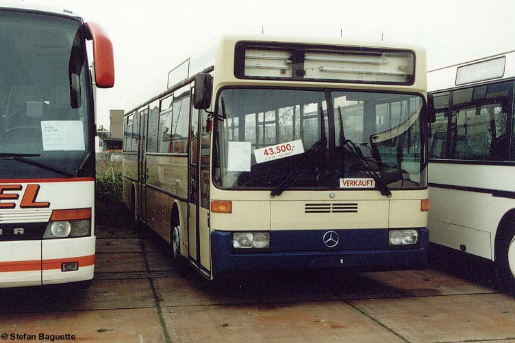 03.12.2001 | Boeckels, Willich (Stefan Baguette) Der ehemalige Wagen 8507 der Stadtwerke Mönchengladbach/MöBus, ein im Jahre 1985 beschaffter Mercedes-Benz O 405, gelangte von einem unbekannten Zwischenbesitzer zum Omnibushändler Boeckels in Willich. Der Käufer des Wagens war ebenfalls nicht in Erfahrung zu bringen.