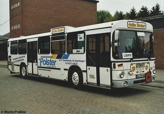 (Moritz Preßler) Das Delmenhorster Busunternehmen Hutfilter setzt den ehemaligen Wagen 322 der Stadtwerke Mönchengladbach ein. Der bei MöBus im Oktober 1983 auf das Kennzeichen MG-EE 469 zugelassene MAN SL 200 erhielt bei Hutfilter die Zulassung DEL-HH 60.