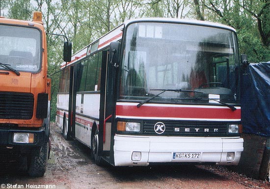 (Stefan Heinzmann) Wie in der Meldung vom 27.05.2002 bereits berichtet, hat das Nettetaler Busunternehmen Terlinden den Setra S 215 SL mit der Zulassung VIE-RT 154 vor einiger Zeit an die Kurt Seger GmbH & Co KG in Münnerstadt verkauft. Der Wagen wurde auf das neue Kennzeichen KG-KS 172 angemeldet und wird in der bei Terlinden angebrachten Lackierung nach dem Schema der Busverkehr Rheinland GmbH eingesetzt. Das ursprünglich bei der Regionalverkehr Münsterland GmbH in Dienst gestellte Fahrzeug verkehrt bei Seger im Auftragsverkehr der Omnibusverkehr Franken GmbH.
