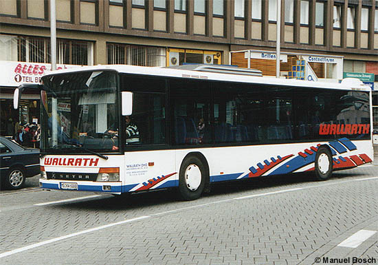 (TBA / Christoph Beckmann) Das Omnibusunternehmen Wallrath aus Mönchengladbach hat für den Auftragsverkehr der Niederrheinischen Versorgung und Verkehr AG einen weiteren Setra S 315 NF beschafft. Der dritte Wagen dieses Typs bei Wallrath wurde auf das Kennzeichen MG-KW 6000 zugelassen.