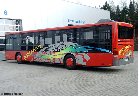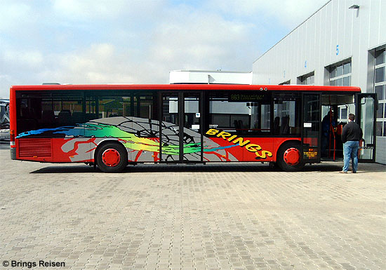 (Fa. Brings) Am 22.03.2004 hat das Busunternehmen Brings in Willich-Schiefbahn einen neuen Setra S 315 NF in Betrieb genommen und auf das Kennzeichen VIE-BH 800 zugelassen. Für den Auftragsverkehr der Rheinischen Bahngesellschaft AG in Düsseldorf erhielt der Niederflurbus deren Nummer 9192. Erstmals wurde ein Linienbus von Brings mit einer roten Grundlackierung versehen, während das aufgebrachte Motiv dem des im Jahre 2002 beschafften EvoBus MB O 530 (Citaro) gleicht. Die Aufnahmen der Firma Brings zeigen den Neuzugang bei der Übernahme auf dem Gelände der Setra-Vertretung Boeckels in Willich-Schiefbahn.