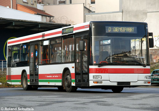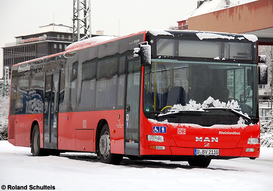 (n.de / Roland Schulteis) Die Busverkehr Rheinland GmbH (BVR) aus Düsseldorf hat im Dezember einen weiteren neuen MAN A20 (NÜ 323 Lion's City) in Dienst gestellt. Im Gegensatz zu den Neuwagen vom August ist der auf D-BV 2110 zu- gelassene Bus mit einer Klimaanlage und dem MAN-Armaturenbrett ausgestat- tet. Das linke Bild von Roland Schulteis zeigt das Fahrzeug in der Betriebsstelle Düsseldorf.
