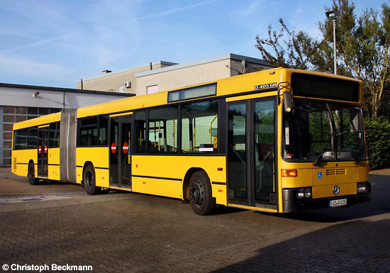 (Christoph Beckmann) Die Firma Glauch aus Viersen-Dülken hat zwei gebrauchte EvoBus MB O 405 GN2 übernommen. Die Niederflur- gelenkbusse erhielten die Kennzeichen VIE-G 6120 und 6130. Sie waren ursprünglich bei der Essener Verkehrs-AG unter den Wagen- nummern 3623 und 3632 und danach noch als Leihwagen bei der Stadtwerke Bonn GmbH im Einsatz.