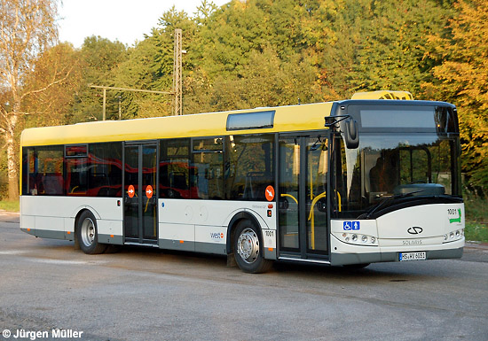 (n.de / Jürgen Müller) Die WestEnergie und Verkehr GmbH (west) mit Sitz in Erkelenz hat bereits Ende Oktober vier Neufahrzeuge in Betrieb genommen. Zwei Solaris Urbino 12 erhielten die Wagennummern 1001 und 1002 sowie die Kenn- zeichen HS-WV 6051 und 6052, zwei Solaris Urbino 18 die Nummern 1021 und 1022 sowie die Zulassungen HS-WV 6053 und 6054. Die Aufnahmen von Jürgen Müller zeigen links den Wagen 1001 sowie rechts die Wagen 1002 und 1022.
