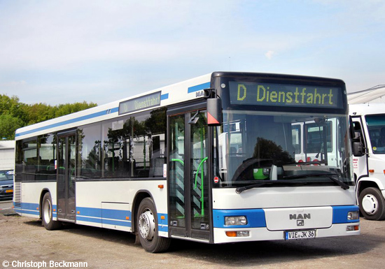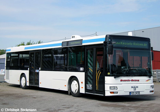 Zudem wurden zwei MAN A21 (NL 263) gebraucht beschafft: Ein Exemplar des Baujahres 2000, das ursprünglich bei der Hagener Straßenbahn AG als Wagen 741 im Einsatz war, wurde auf das Kennzeichen VIE-JK 36 zugelassen, und ein 2005 erstzugelassener Wagen, der zuvor bei der Firma Wurster aus Filderstadt mit dem Kennzeichen ES-WR 641 lief, erhielt die Zulassung VIE-JK 83. Die Auf- nahmen von Christoph Beckmann zeigen die beiden Gebrauchtzugänge auf dem Betriebshof der Firma Kessels.