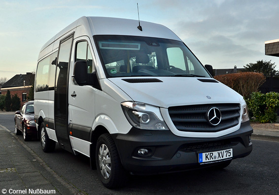 (n.de / Cornel Nußbaum) Für den Bürgerbus Anrath hat die Stadtwerke Krefeld MOBIL GmbH (SWK) einen neuen Kleinbus in Dienst gestellt. Der Mercedes-Benz Sprinter, der bei der Firma Beilharz in Essen für den Bürgerbuseinsatz umgebaut wurde, erhielt das Kennzeichen KR-XV 75. Der bislang als Ersatzfahrzeug in Anrath vorgehaltene Mercedes-Benz Sprinter mit der Zulassung KR-XV 55 soll als neues Reservefahrzeug zum Bürgerbus Willich wechseln. Die Aufnahme von Cornel Nußbaum zeigt den Neuzugang am 21.01.2016.