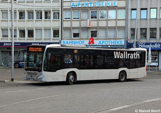 (n.de) Die Claus Haupts GmbH aus Mönchengladbach hat einen EvoBus MB O 530 C2 (Citaro) gebraucht beschafft, der zuvor im Regionalbusverkehr des Münchner Verkehrs- und Tarifverbundes (MVV) zum Einsatz kam. Das auf MG-MH 505 zugelassene Fahrzeug wird von Haupts auf Einsatzwagen-Leistungen im Auftrag der Stadtwerke Neuss GmbH (SWN) eingesetzt. Das Bild von Christopher Lambers zeigt den Bus am 24.02.2021 bei der Ankunft an der Neusser Deichstraße.