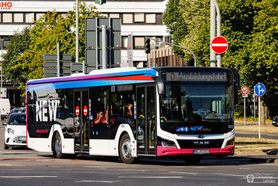 (n.de) Die NEW mobil und aktiv Mönchengladbach GmbH hat die diesjährige Neufahrzeuglieferung erhalten. Insgesamt 15 Solowagen des Typs MAN 12C (NL 280 Hybrid Lion's City) wurden als Wagen 2201 bis 2215 in den Bestand eingereiht und erhielten die Kennzeichen MG-EQ + Wagennummer. Die technische Ausstattung mit Mildhybrid-Modul, Abbiegeassistent und Klimaanlage entspricht weitgehend jener der von Mercedes-Benz in den vergangenen Jahren gelieferten Neufahrzeuge. Erstmals seit dem Jahr 2007 konnte MAN damit wieder Fahrzeuge nach Mönchengladbach liefern, der einstige Stammlieferant war in den vergangenen zwei Jahren gar nicht mehr im Bestand vertreten gewesen. Die Aufnahmen von Christopher Lambers zeigen die Wagen 2211 und 2212 am ersten Einsatztag, dem 01.09.2022.
