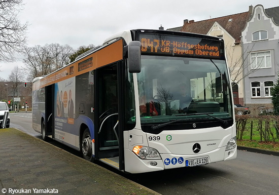 (n.de) Bereits Mitte November hat die Rath Reisen GmbH & Co. KG aus Viersen-Süchteln ein Neufahrzeug in Dienst gestellt. Der EvoBus MB O 530 C2 (Citaro) wurde auf das Kennzeichen VIE-EA 120 angemeldet und erhielt für den Einsatz im Auftragsverkehr der Stadtwerke Krefeld MOBIL GmbH (SWK) die Funknummer 939. Die Aufnahme von Ryokan Yamakata zeigt das Fahrzeug am 18.02.2022 am Bockumer Platz.