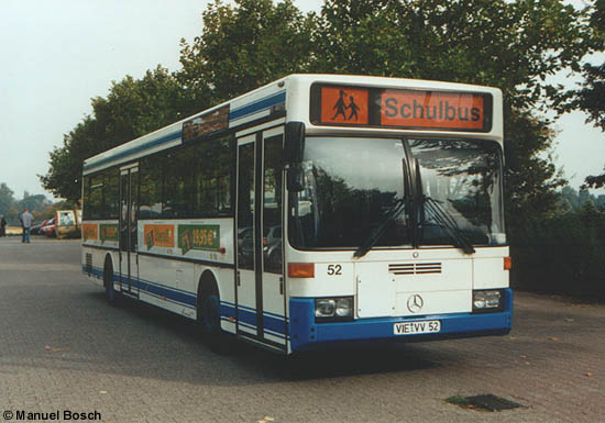 Bei dem zweiten Fahrzeug handelt es sich mit dem Wagen 52 um den ältesten im Bestand der niederrheinwerke befindlichen Omnibus. Der im Jahre 1988 in Dienst gestellte Mercedes-Benz O 405 präsentierte sich ebenfalls am 02.10.2002 am SportCentrum Ransberg dem Fotografen.