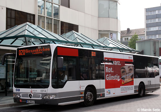 (n.de) Mehrere neue Werbungen sind bei der NVV mobil und aktiv GmbH aus Mönchengladbach zu verzeichnen. Eine Heckwerbung für die "Zahnarztpraxis Oliver Junker" wurde bei dem EvoBus MB O 530 (Citaro) mit der Wagennummer 0912 angebracht.
