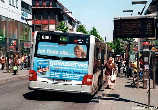 (n.de) Bei der NVV mobil und aktiv GmbH aus Mönchengladbach wurde nun auch bei dem MAN A23 (NG 263) mit der Wagennummer 0067 die Heckwerbung für das "Rheydter City-Management" entfernt.