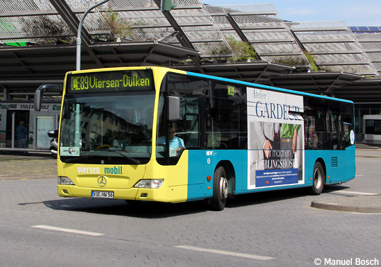(n.de) Mit dem Wagen 1104 wurde ein sechster Solaris Urbino 12 der NEW mobil und aktiv Mönchengladbach GmbH mit einer Vollwer- bung für "NEW" versehen. Der EvoBus MB O 530 G (Citaro) mit der Wagennummer 0861 erhielt eine Bandenwerbung für "Schule Kahle".