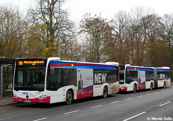 Bei den EvoBus MB O 530 (Citaro) mit den Nummern 1011 und 1012 wurde unterdessen das fahrerseitige 18/1-TrafficBoard für die "Stadtsparkasse Mönchengladbach" entfernt.