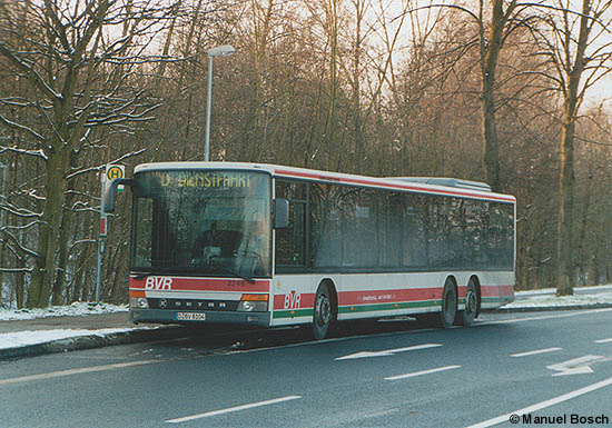 Am 06.01.2003, dem letzten Betriebstag der Linie, hat der auf D-BV 8104 zugelassene Setra S 319 NF der Busverkehr Rheinland GmbH in Düsseldorf im Einsatz auf der Linie SB86 die Endstelle Kaarst Kaarster See erreicht.