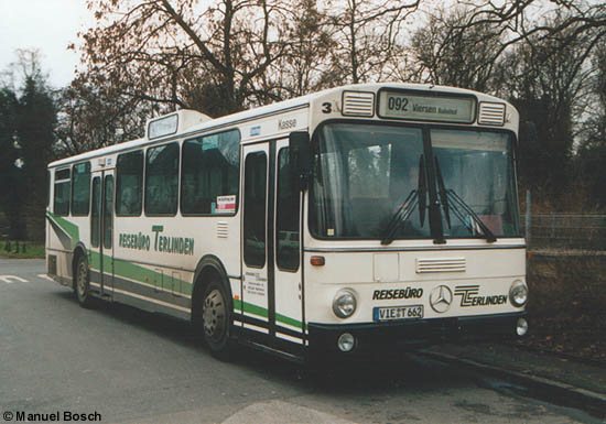 Der letzte im Kreis Viersen im Linienverkehr eingesetzte Standard I-Omnibus ist dieser auf das Kennzeichen VIE-T 662 zugelassene Mercedes-Benz O 307 des Busunternehmens Terlinden aus Nettetal-Kaldenkirchen. Am 28.01.2003 stand der Wagen in Viersen am Bahnhof.