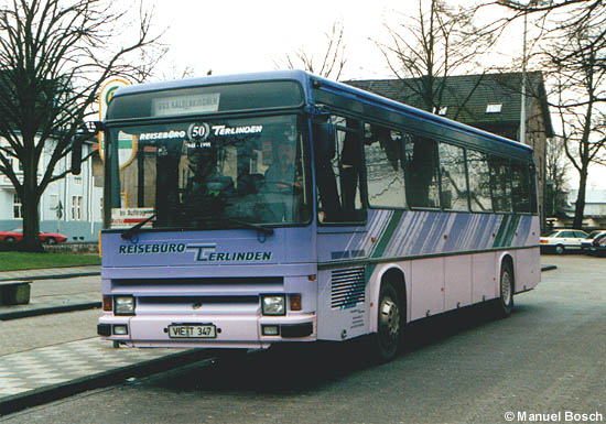 Den einzigen Omnibus von Renault im Kreis Viersen setzt das Busunternehmen Terlinden aus Nettetal-Kaldenkirchen ein. Der auf das Kennzeichen VIE-T 347 zugelassene R 332 (Tracer) wurde am 30.12.2002 in Kempen am Bahnhof im Einsatz als Linie 093 aufgenommen.