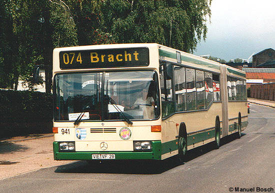 Nur drei Mercedes-Benz O 405 GN2 verkehren im Kreis Viersen. Einer der beiden von der Kraftverkehr Schwalmtal eingesetzten Busse dieser Bauart, der auf das Kennzeichen VIE-VF 29 zugelassene, erreicht am 02.07.2003 das Schulzentrum in Schwalmtal-Waldniel.