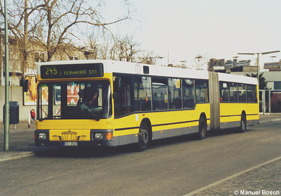 Ursprünglich aus Mönchengladbach stammt der Wagen 2822 der Berliner Verkehrs-Betriebe, der am 06.04.2003 an der Hertzallee in Berlin aufgenommen wurde. Die Fotogalerie über den Verbleib der Mönchengladbacher MAN A11 (NG 272) wurde vollständig überarbeitet.