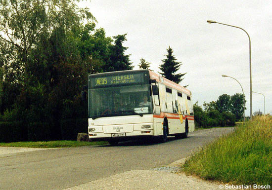 Die Neuwerker Straße in Viersen wurde zwischen den Ortsteilen Hamm und Ummer in den letzten Monaten umfassend ausgebaut. Am 04.07.2004 konnte Sebastian Bosch den MAN A21 (NL 223) mit der Nummer 84 der niederrheinwerke noch auf alter Fahrbahn aufnehmen.