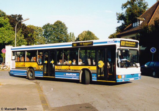 Die MAN A10 der ersten Lieferserien der Niederrheinwerke Viersen mobil GmbH werden nur-mehr als Reserve- und Schulbusse verwendet. Am 16.09.2004 kam der 1994 gebaute NL 202 mit der Nummer 39 auf der Linie CE89 zum Einsatz, aufgenommen am Viersener Bahnhof.