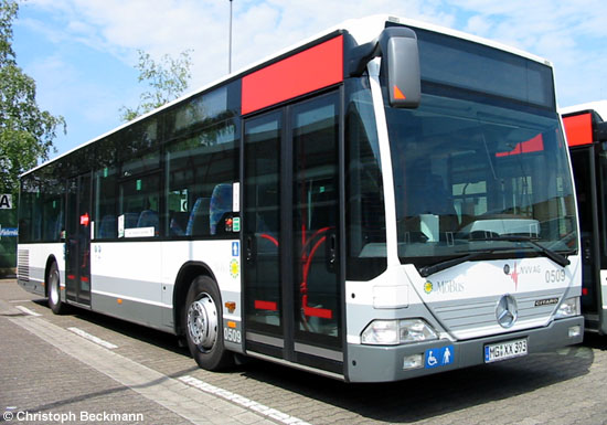 Aus der jüngsten Beschaffung der Mönchengladbacher NVV stammen drei als Wagen 0507 bis 0509 eingereihte EvoBus MB O 530 Ü (Citaro), die eine 100 km/h-Zulassung erhielten. Christoph Beckmann nahm den Wagen 0509 am 18.07.2005 auf dem Betriebshof auf.