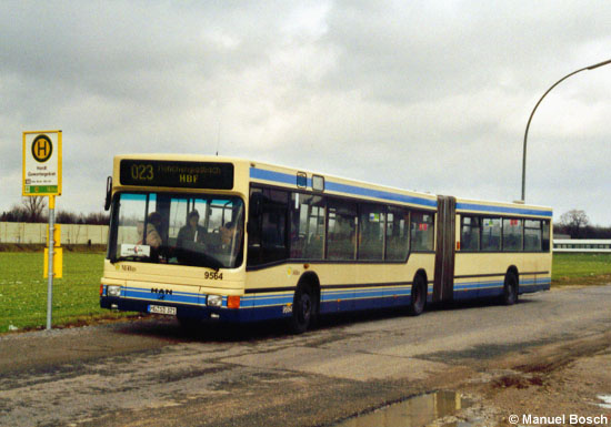 Seit Oktober 2005 enden die nur bis Mönchengladbach-Hardt verkehrenden Kurse der Linie 023 an der neuen Endstelle Hardt Gewerbegebiet. Am 01.03.2006 hat der MAN A11 (NG 312) mit der Wagennummer 9564 der NVV sein Fahrtziel im entstehenden Gewerbegebiet erreicht.
