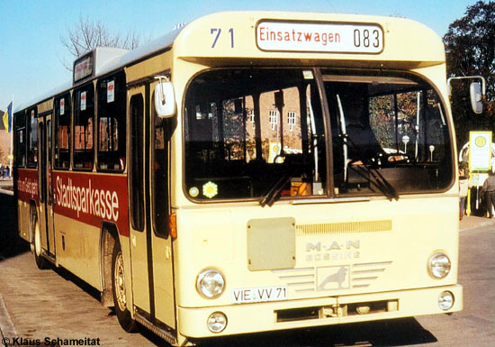 Insgesamt 13 Büssing BS 110 V beschaffte die Viersener Verkehrs-GmbH von 1970 bis 1973. Zur letzten, bereits mit "MAN-Büssing" beschrifteten Serie gehörte der 1985 ausgemusterte Wagen 71, den Klaus Schameitat im November 1984 am Viersener Busbahnhof antraf.