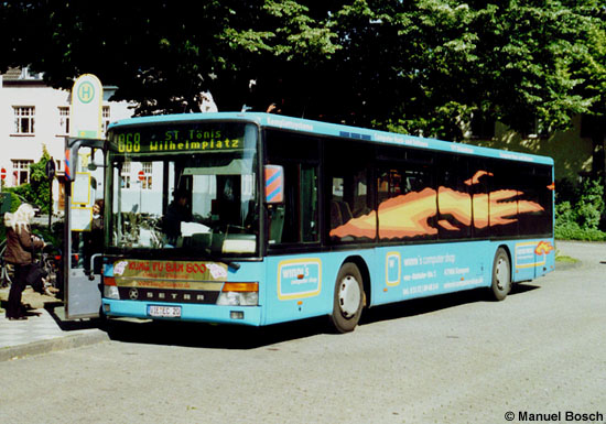 Die E+C Bus Ltd. aus Viersen hat im April mit dem auf das Kennzeichen VIE-EC 20 zuge-lassenen Setra S 315 NF ihren letzten Omnibus ausgemustert. Am 30.05.2007 konnte der im Auftragsverkehr der SWK eingesetzte Wagen in Kempen am Bahnhof aufgenommen werden.