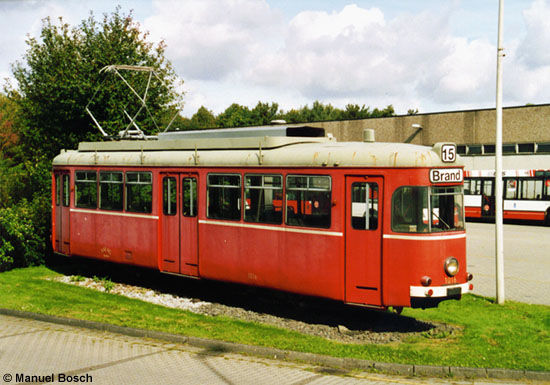 Dieser vierachsige Großraum-Straßenbahnwagen von Duewag wurde ursprünglich im Mai 1957 in Mönchengladbach als Wagen 26 in Dienst gestellt. Nach späteren Einsätzen in Aachen und Mainz steht das Fahrzeug heute als Denkmal auf dem Betriebshof der ASEAG in Aachen.