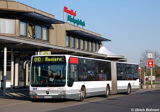 Wie im letzten Jahr werden auch die diejährigen Neuwagen am Niederrhein von Mercedes-Benz geliefert. Den EvoBus MB O 530 G (Citaro) mit der Nummer 0864 der NVV aus der letzten Lieferung nahm Ulrich Bohnen am 20.03.2009 am Mönchengladbacher Flughafen auf.