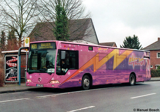 Seit Ende 2009 gibt es in Viersen wieder eine Vollwerbung. Der EvoBus MB O 530 (Citaro) mit der Nummer 74 der niederrheinwerke erhielt eine ganzflächige künstlerische Gestaltung, abgelichtet am 12.12.2009 am Immelnbusch. Die entsprechende Fotogalerie wurde aktualisiert.
