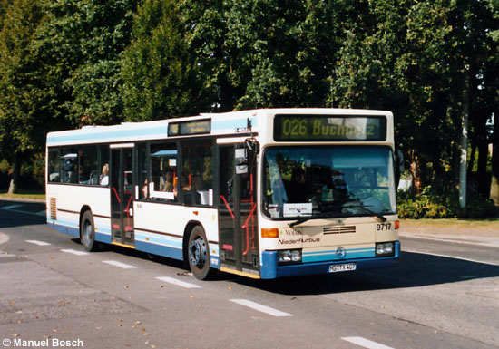 Am 13.06.2010 übernimmt die Linie 016 die Bedienung von Buchholz von der Linie 026. Der EvoBus MB O 405 N2 mit der Nummer 9717 der Mönchengladbacher NVV war am 13.09.2007 in Rheindahlen an der Hilderather Straße noch als Linie 026 in Richtung Buchholz unterwegs.