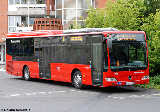 Jüngster Neuzugang der BVR aus Düsseldorf ist ein EvoBus MB O 530 LE Ü mit dem Kennzeichen D-BV 2100, der auch im Kreis Viersen zum Einsatz gelangt. Roland Schulteis hielt den Low-Entry-Bus am 18.06.2010 bei einer Pause am Viersener Busbahnhof im Bild fest.