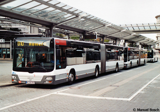 Gleich zwei der nur acht MAN A23 (NG 313 Lion's City) der NVV aus Mönchengladbach standen am 26.07.2008 am Mönchengladbacher Hauptbahnhof hintereinander aufgereiht.