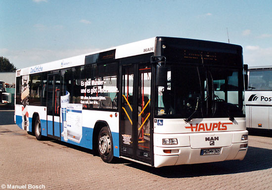 Seltenheitswert in der Region haben die beiden von der Firma Haupts aus Mönchengladbach im Jahr 2006 beschafften MAN A78 (Lion's City). Der auf das Kennzeichen MG-MH 346 angemel- dete Wagen, der im Bild auf dem Betriebshof zu sehen ist, wurde allerdings in diesem Jahr ausgemustert, während das Schwesterfahrzeug aktuell im Schulbusdienst Verwendung findet.