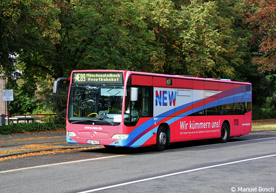 Nach einem langen Spätsommer hält nun der Herbst auch am Niederrhein merklich Einzug. Als der EvoBus MB O 530 (Citaro) mit der Wagennummer 57 der Viersener NEW am 01.10.2016 die Haltestelle Immelnbusch stadtauswärts verließ, leuchteten das erste bunte Laub und die beerenrote Vollwerbung des Busses um die Wette.
