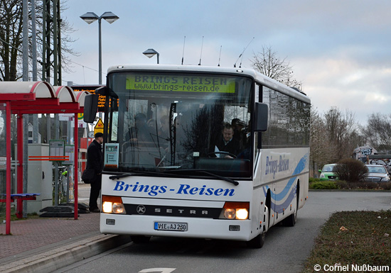 Anfang März war der gesamte Bahnverkehr rund um Viersen wegen Bauarbeiten für anderthalb Wochen eingestellt, wodurch umfangreiche Schienenersatzverkehr erforderlich wurden. Dabei kam auch der Setra S 315 UL mit dem Kennzeichen VIE-AJ 230 von Brings aus Willich zum Einsatz, den Cornel Nußbaum am 10.03.2017 am Bahnhof Willich-Anrath aufnehmen konnte.