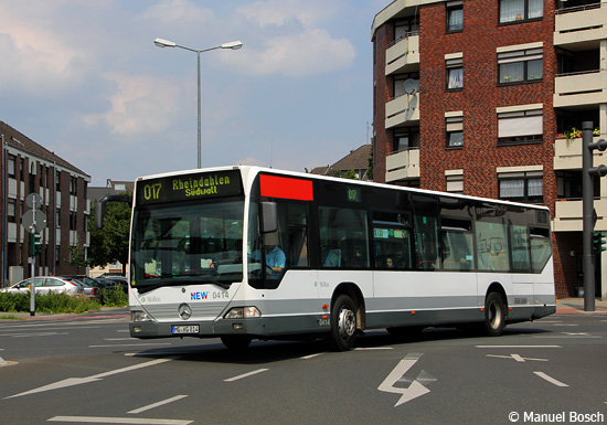 Mitte Juli wird das Angebot der Linie 017 abermals ausgeweitet, so dass im Kernabschnitt ein ganztägiger 10-Minuten-Takt besteht. Nach seiner Ausmusterung im Jahr 2016 wird der als Wagen 0414 der NEW geführte EvoBus MB O 530 (Citaro), der am 01.08.2014 am früheren "Affenfelsen" nach Rheindahlen unterwegs war, diese Änderung allerdings nicht mehr erleben.