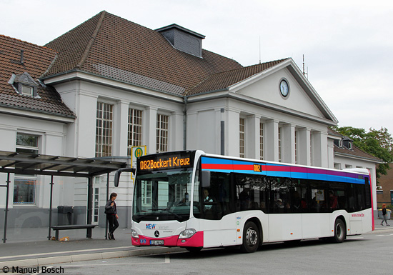 Vor nunmehr genau 100 Jahren wurden die Eisenbahnstrecken in Viersen in ihren bis heute bestehenden Verlauf gebracht und der Viersener Bahnhof in seiner heutigen Form errichtet. Vor dem inzwischen wieder ansehnlich renovierten Empfangsgebäude stand am 01.10.2016 der EvoBus MB O 530 C2 (Citaro) mit der Wagennummer 42 der Viersener NEW bereit.