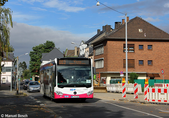 Drei Jahrzehnte nach Beginn der Planungen geht der sogenannte Nordring in Mönchengladbach nun seiner Vollendung entgegen. Der neue Abschnitt, der künftig von der Linie 035 befahren werden soll, wird nahe der Haltestelle Künkelstraße angeschlossen. An dieser Stelle war am 29.09.2016 der EvoBus MB O 530 C2 (Citaro) mit der Nummer 1502 der NEW unterwegs.