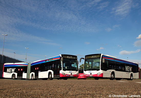 Seit Mitte August kommen nun die Neufahrzeuge der Mönchengladbacher NEW zum Einsatz. Noch vor dem ersten Liniendienst hatte Christopher Lambers die Gelegenheit, den EvoBus MB O 530 C2 Hybrid (Citaro) mit der Nummer 1905 und den EvoBus MB O 530 G C2 Hybrid (Citaro) mit der Nummer 1962 auf dem Betriebshof fotogerecht aufgestellt abzulichten.