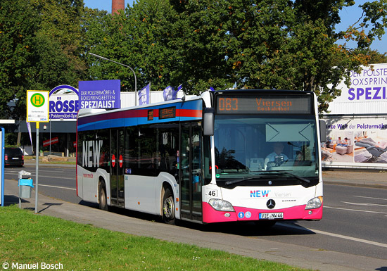 Im zu Ende gegangenen Jahr 2021 wurde mit einer Taktverdichtung der Linie 083 erstmals seit rund 30 Jahren eine substanzielle Angebotsverbesserung im Viersener Stadtbusnetz realisiert. Auf dem neuen Umlauf konnte am 09.10.2021 der als Wagen 46 eingereihte EvoBus MB O 530 C2 (Citaro) der Viersener NEW an der Haltestelle Gerberstraße aufgenommen werden.