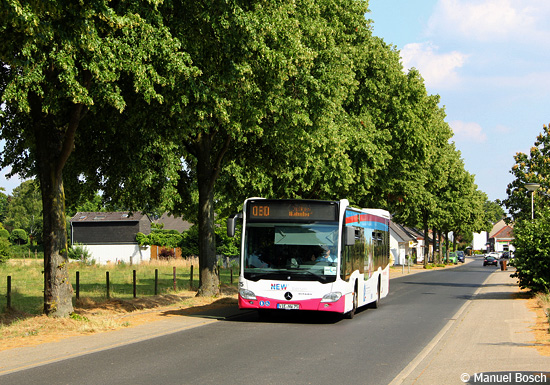 Ländlich-beschaulich geht es in Schirick zu, einem unmittelbar an der Grenze zu Alt-Viersen gelegenen Ortsteil von Viersen-Dülken. Die Linie 080 der Viersener NEW bietet eine stündliche Anbindung nach Viersen wie nach Dülken. Am 05.07.2019 war hier der EvoBus MB O 530 C2 (Citaro) mit der Wagennummer 75 in Richtung Dülken unterwegs.