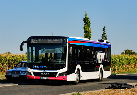 Seit dem 01.09.2022 kommen die ersten Neuwagen der diesjährigen Fahrzeuglieferung bei der Mönchengladbacher NEW zum Einsatz. Erstmals seit 15 Jahren wieder konnte MAN den Auftrag für sich verbuchen und lieferte 15 MAN 12C (NL 280 Hybrid Lion's City), von denen Christopher Lambers den Wagen 2211 im Gewerbegebiet Hardt antreffen konnte.